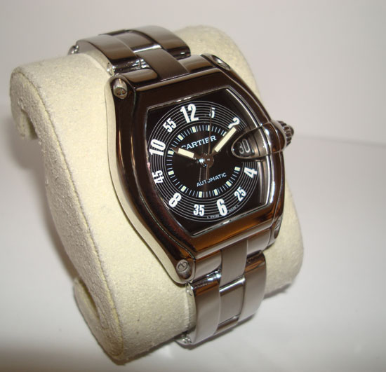Description :steel, black dial, sapphire crystal, automatic movement, central second, date at three, magnifier date, luminescence, diameter 44 mm with crown, waterproof 100 meters, two straps available, folding clasp.