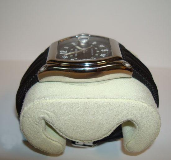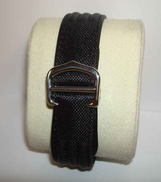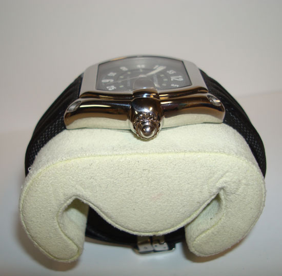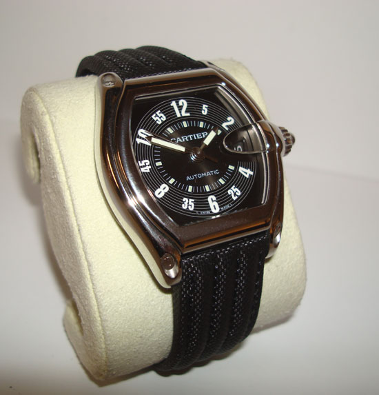 Description :steel, black dial, sapphire crystal, automatic movement, center seconds, handles and luminescent dial, date at three, magnifying glass on date, diameter 31 mm, leather strap, steel folding clasp, year 2008.