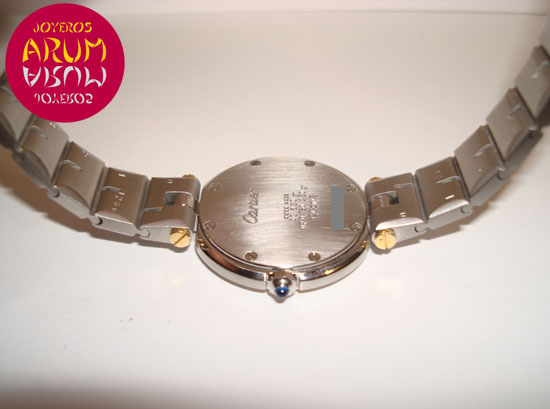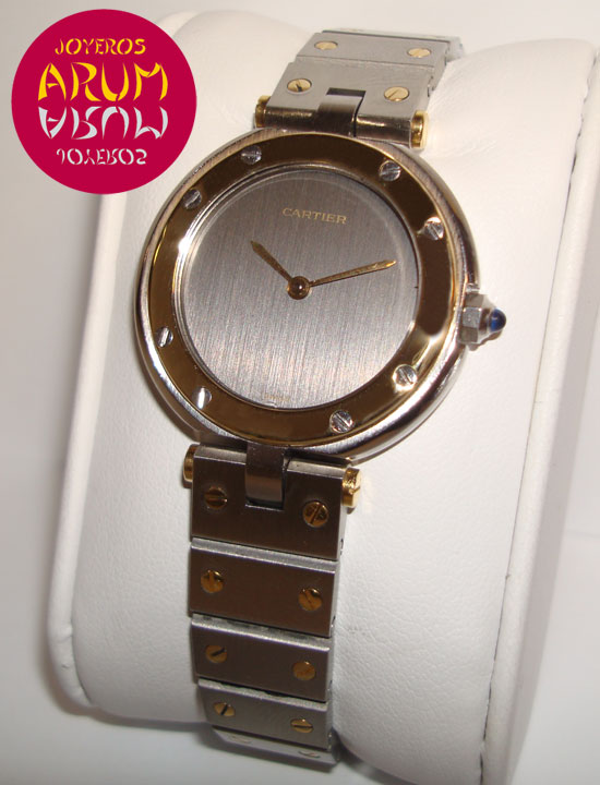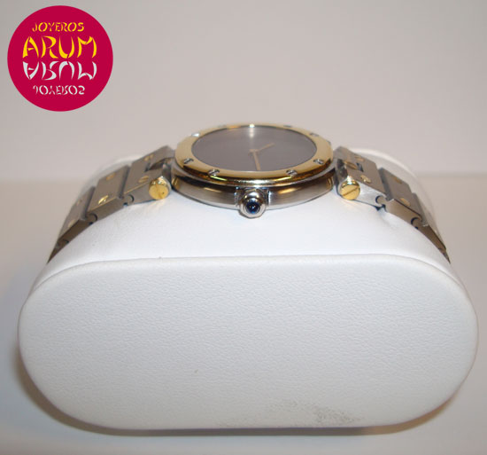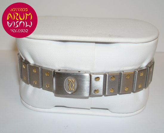 Description :lady’s watch, steel and yellow gold, screwed bezel, sapphire crystal, quartz movement, diameter 26 mm, crown decorated with spinel, steel strap, folding clasp.