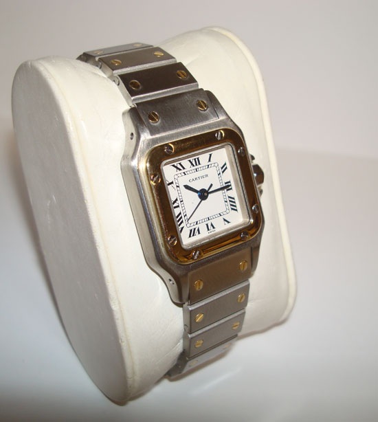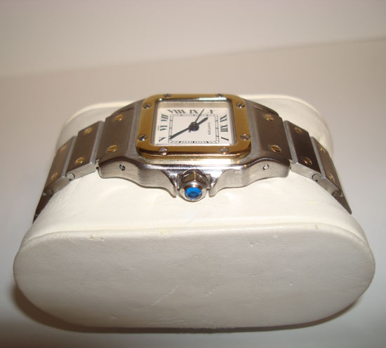 Description :steel and yellow gold, screw gold bezel, sapphire crystal, white dial, roman numerals, center seconds, blue steel hands, automatic movement, diameter 28 mm, screw crown with gemstone, gold and steel bracelet, folding clasp .