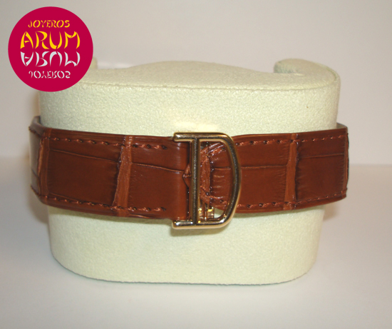 Description :yellow gold, white guilloche dial, smooth bezel, sapphire crystal, automatic movement, Cartier caliber 8100 MC, blued steel hands, chronograph minutes indicator, hour indicator, small seconds, date at twelve, crown decorated with sapphire and two buttons at right, diameter 31 mm by 52 mm, waterproof 30 meters, brown leather strap, rose gold folding clasp.