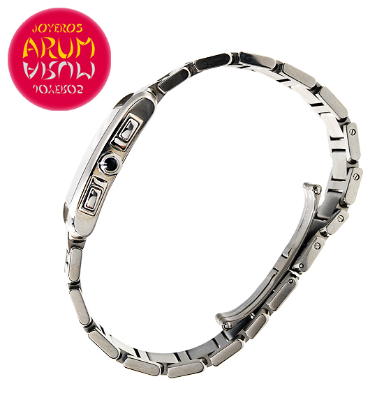 Other specifications :chronograph, date at twelve, blue steel hands, crown decorated with a spinel.