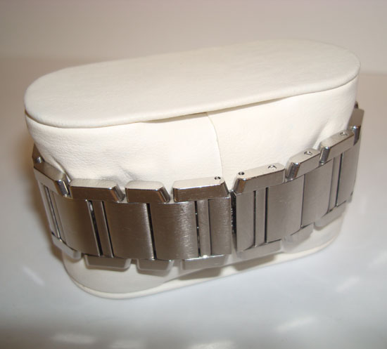 Description :steel, sapphire crystal, automatic movement, center seconds, date at six, octagonal crown decorated with a stone, diameter 27.5 mm, steel strap, hidden folding clasp.