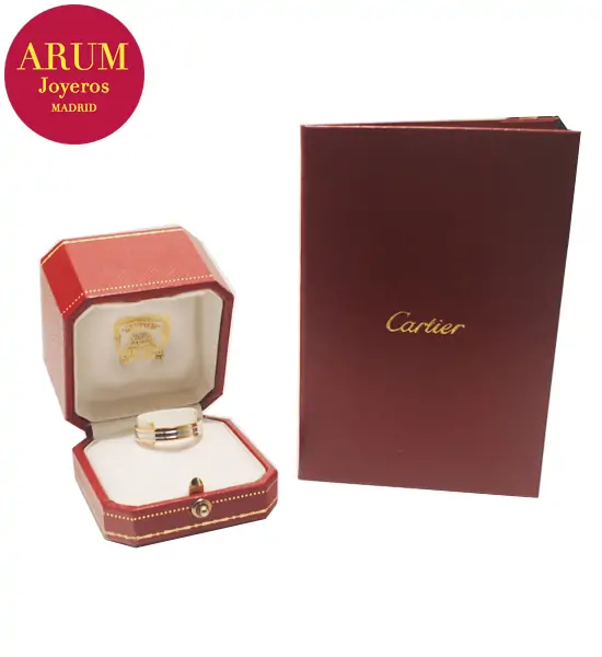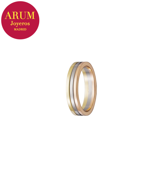 Description: Wedding ring from the prestigious Cartier jewellery company, made in 18 carat rose gold, 18 carat white gold and 18 carat yellow gold.Width: 4.8 mm.