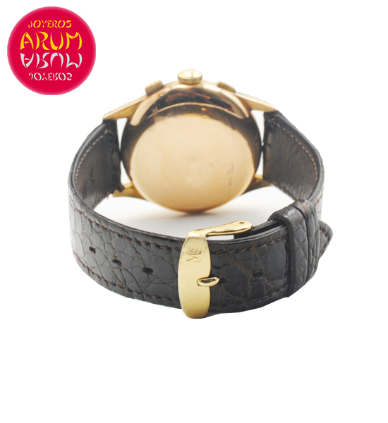 Other specifications :18K rose gold, chronograph, telemetre, 17 rubis, antimagnetic, small seconds at nine, minute counter at three, red central handle.