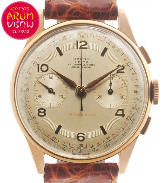 Other specifications :18K gold, chronograph, small seconds at nine, antimagnetic.