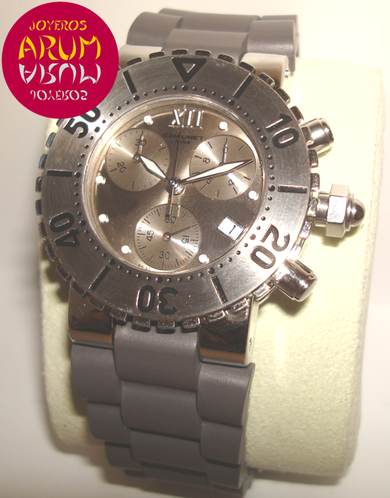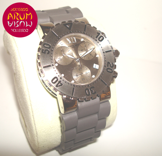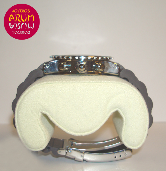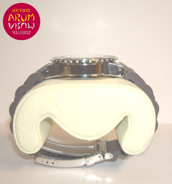 Description :steel, brown dial, rotating bezel, sapphire crystal, quartz movement, chronograph, three indicators on the dial, seconds, minutes, hours, date at four, luminescent dial indicators and handles, screw crown and two buttons, waterproof 100 meters , diameter 35 mm, rubber strap, folding clasp.