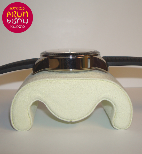 Description :steel, silver dial, fixed bezel with tachymeter scale, sapphire crystal, automatic movement, power reserve 48 hours, chronograph, three indicators on the dial, seconds, minutes and hours, date at three, luminescent handles, crown and two buttons at right, transparent caseback, diameter 42,5 mm, waterproof 50 meters, rubber strap, steel folding clasp.