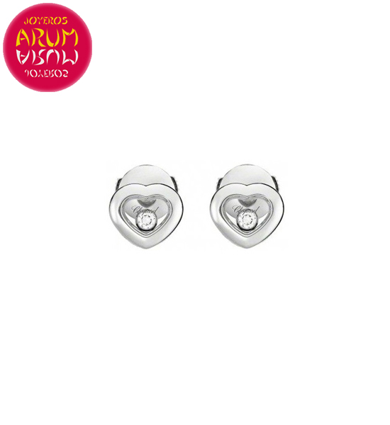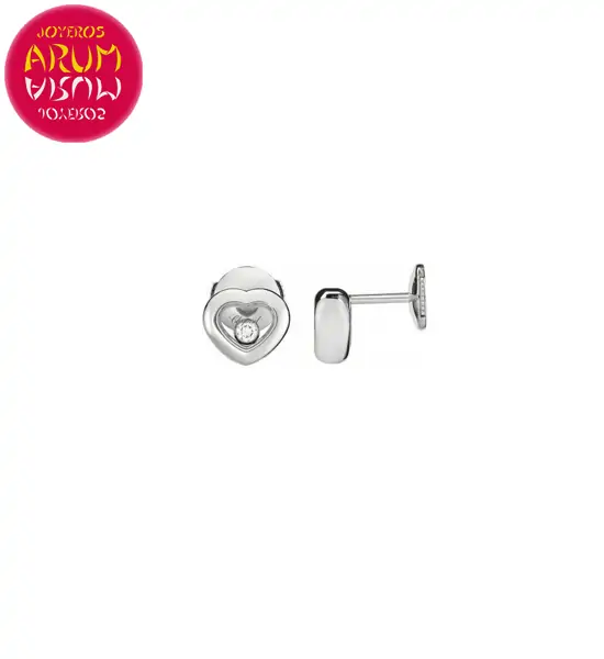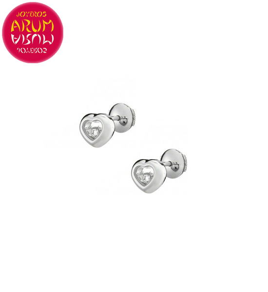 Description: Chopard Happy Diamonds heart earrings made in 18K white gold with two floating diamonds (0,11 cts). Diameter 0,9 mm, weight 4,8 grs.