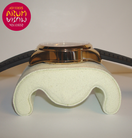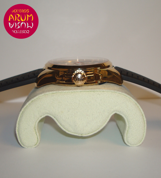 Description :pink gold, smooth bezel, white dial, sapphire crystal, automatic movement, power reserve 46 hours, center seconds, luminescent handles and dial, date with magnifying glass at three, power reserve indicator at six, screw crown, transparent back, diameter 44 mm, waterproof 100 meters, rubber strap, rose gold folding clasp.