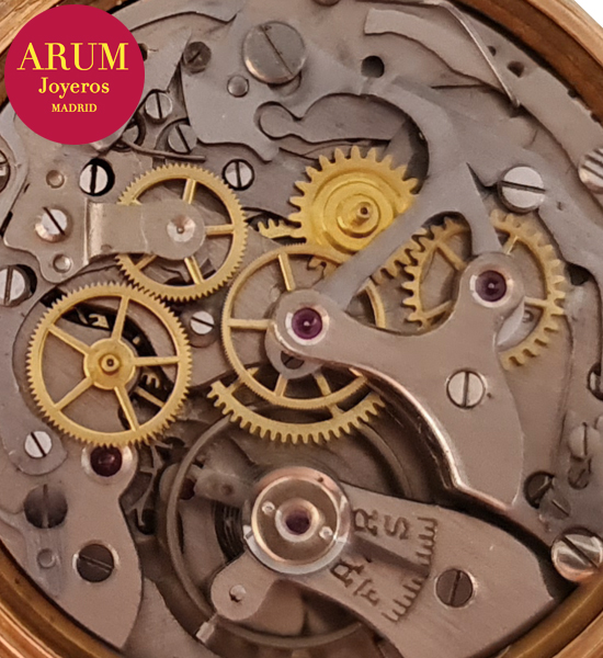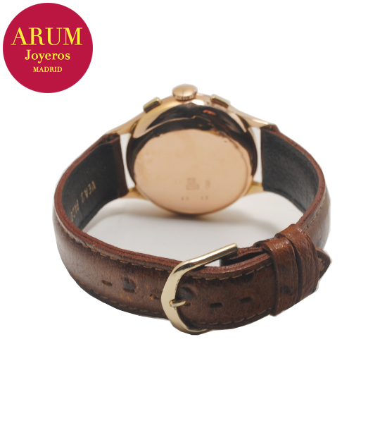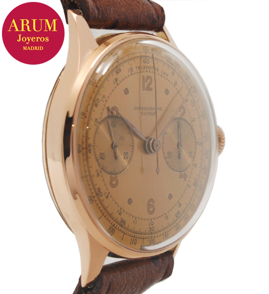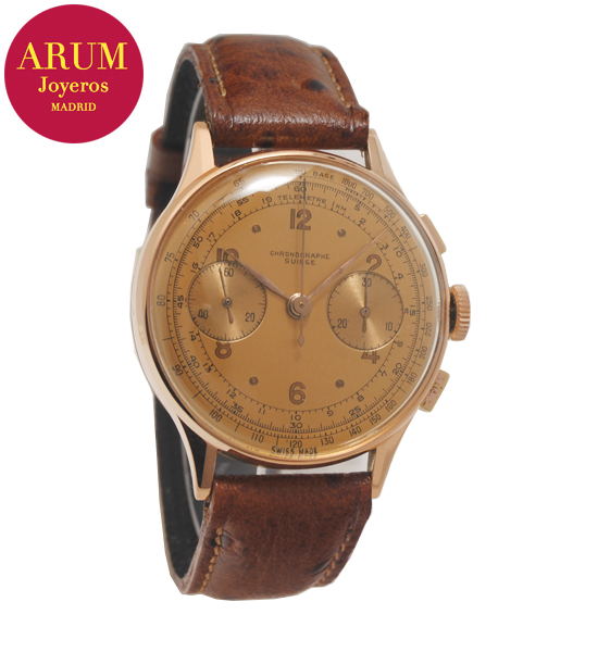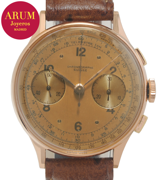 Other specifications :calibre Landeron 48, chronograph, small seconds, 18K gold.