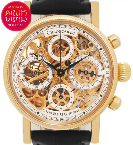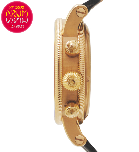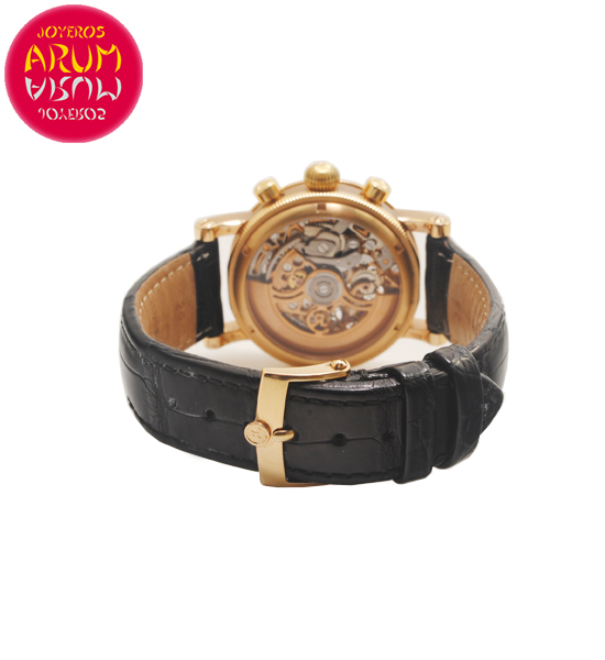 Other specifications :calibre 741S, power reserve 46 hours, chronograph, date at three, small seconds at nine, blue steel hands, 18K gold buckle.