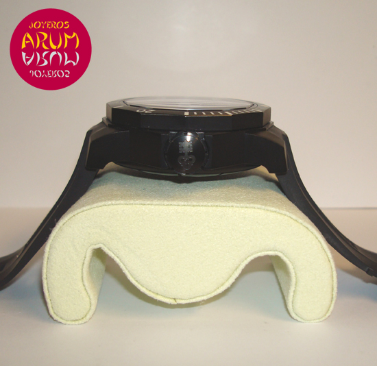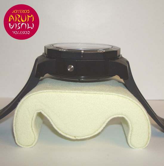 Description :PVD titanium, black dial, unidirectional rotating bezel, sapphire crystal, automatic movement, power reserve 42 hours, handles and bezel with luminescent indicators, date and day of the week at three, small seconds at nine, screw crown , diameter 48 mm, water resistan 1000 meters, rubber strap, buckle closure, year 2011.