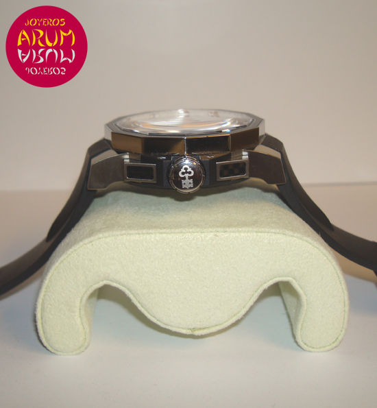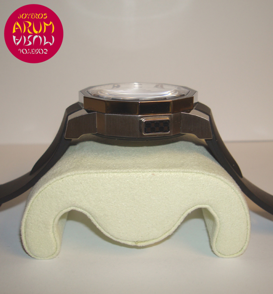 Description :steel, carbon fiber bezel, white dial with nautical flags, sapphire crystal, automatic movement, chronograph, three indicators on the dial, seconds, minutes and hours, handles with luminescent indicators, screw crown and two buttons at right, push assistant to the left, diameter 44 mm, waterproof 100 meters, rubber strap, folding clasp.
