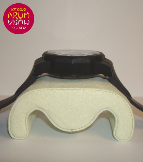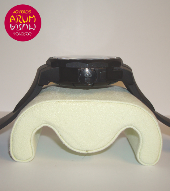 Description :limited edition of 555 pieces, titanium, black dial, sapphire crystal, automatic movement, chronograph, date at three, crown and push at right, diameter 44 mm, waterproof 100 meters, rubber strap, folding clasp.