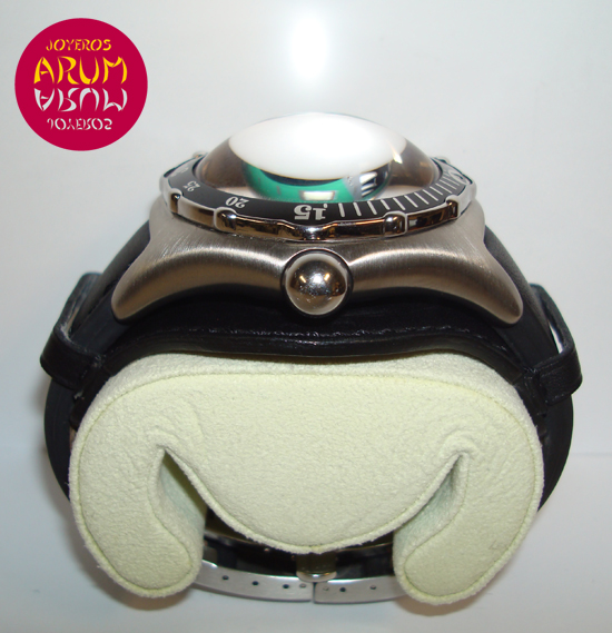 Description :limited edition, steel, domed sapphire crystal, automatic movement, luminescent handles, date at six, 45 mm diameter, water resistant 200 meters, black leather strap, steel folding clasp, year 2009.
