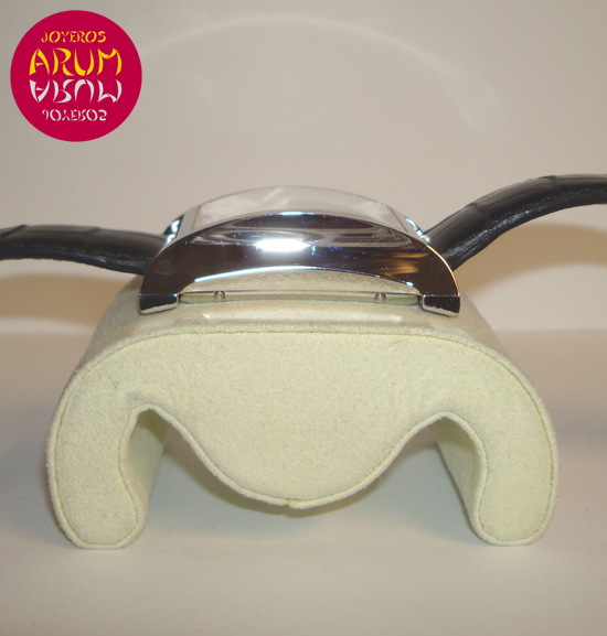 Description :steel, silver dial, sapphire crystal, automatic movement, central second, date at the twelve, second time zone, screw crown, transparent back, diameter 37 mm by 47 mm, waterproof 30 meters, black leather strap, close folding steel.