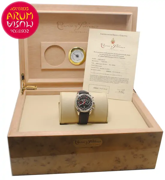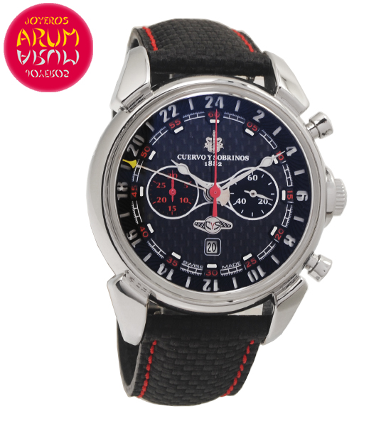 Other specifications :chronograph, GMT (second time zone), date at six, small seconds at three, luminous marks, transparent caseback. Year 2016.