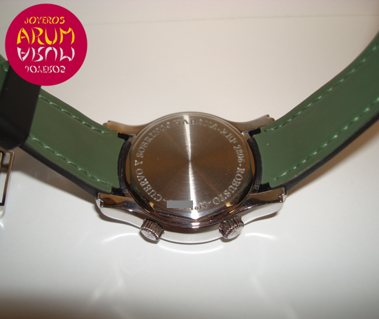 Description :steel, green dial, smooth bezel, domed sapphire crystal, automatic movement, dial with arabic numerals, luminescent handles and dial, center seconds, date at six, crown at four to control the inner bezel, diameter 42 mm, water resistant 200 meters, rubber strap, steel folding clasp.