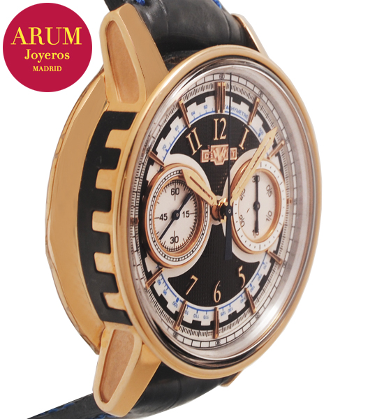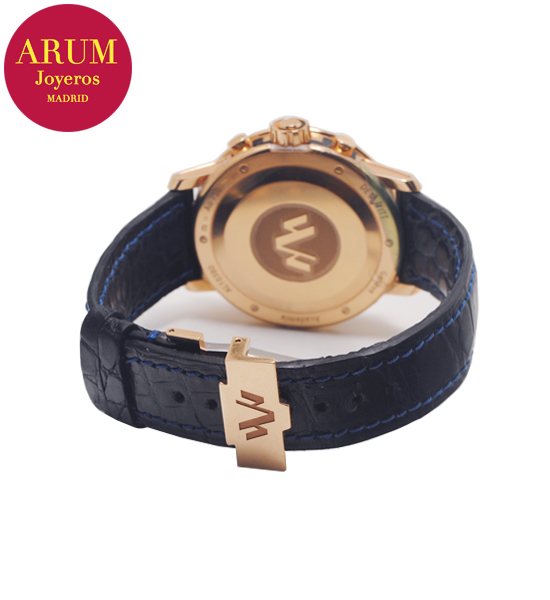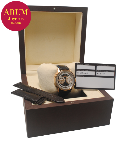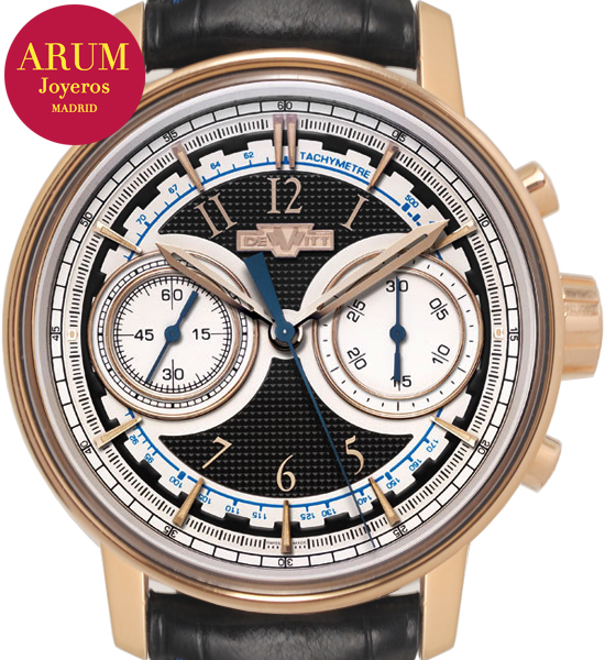 Other specifications :18K rose gold and rubber, chronograph, tachymetre, minute and hour counter. With second strap brand new Dewitt.
