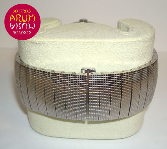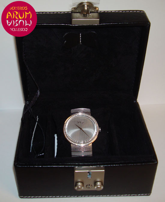 Description :steel, sapphire crystal, brilliants on the bezel, quartz movement, screwed crown, diameter 38 mm, 30 meters water resistant, steel strap, hidden folding clasp.