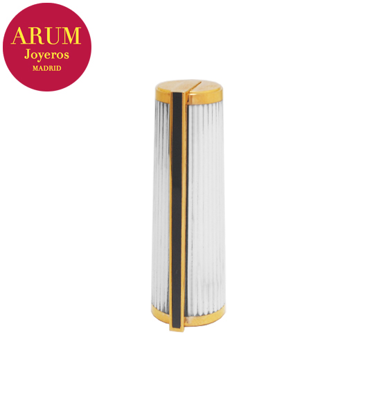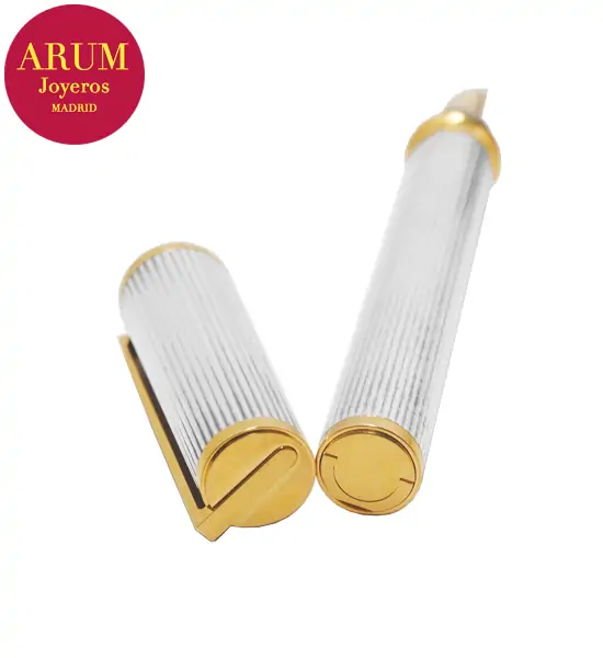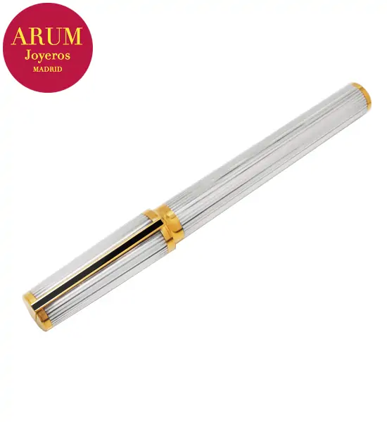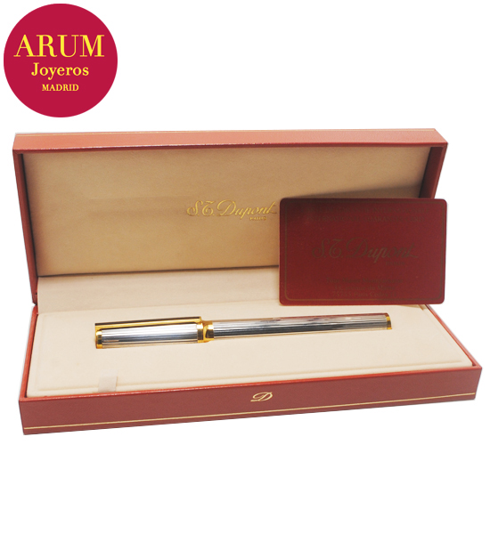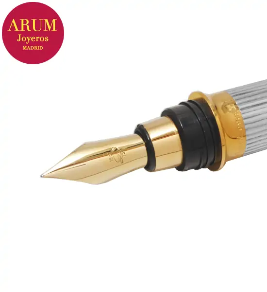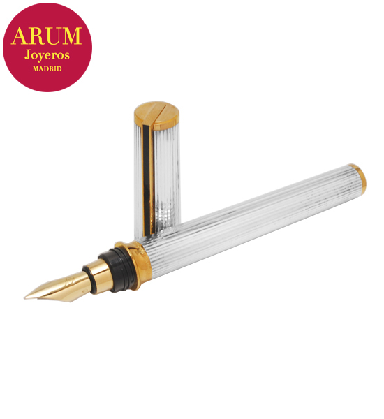 Description: Fountain Pen of the prestigious firm Dupont, made in plaqué platinum and plated gold. Nib is made in 18K gold. Measure is 14 cm.