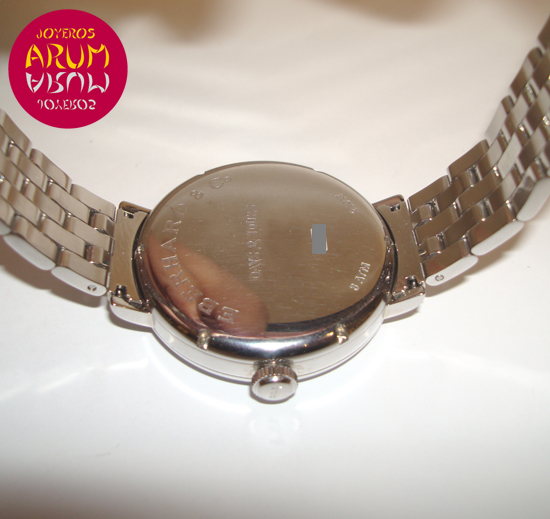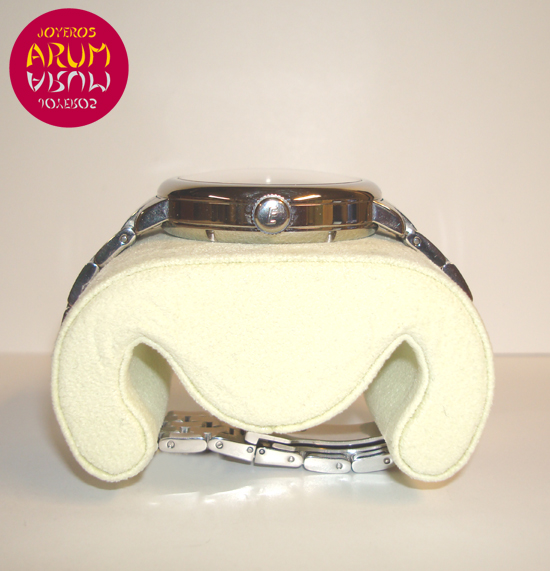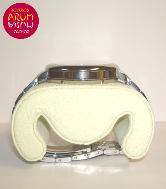 Description :steel, white dial, smooth bezel, sapphire crystal, hand manual movement, power reserve of 192 hours, small seconds at six, power reserve indicator 8 days at nine, screw crown, diameter 40 mm, waterproof 30 meters, steel strap, hidden folding clasp, year 2009.