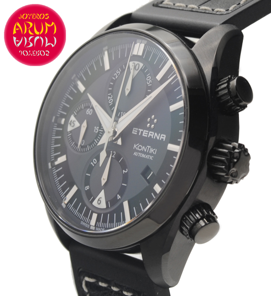 Other specifications :calibre ETA 7750, power reserve 48 hours, PVD steel, chronograph, date at four, small seconds at nine, minute counter at twelve, hour counter at six, luminiscence marks, caseback with Kontiki picture.