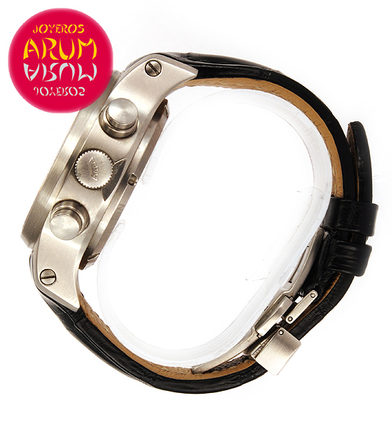 Other specifications :limited edition 100 pieces, chronograph, datel alarm, UTC, GMT, am/pm, two spring barrels: one powers the time measuring functions of the piece (including the chronograph,) and the other provides energy for the alarm module, luminiscence, back transparent caseback. Year 2013.
