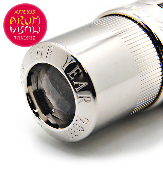 Description: Limited Edition 2007. Magnum size fountain pen with petrified wood body, cap and platinum-plated cap and plunger mechanism. Besides its solid spring clip and cap with screw fit, has gold nib 18k bicolor and numbering inside the cap. Limited manufacturing period January 1 to December 31, 2007.