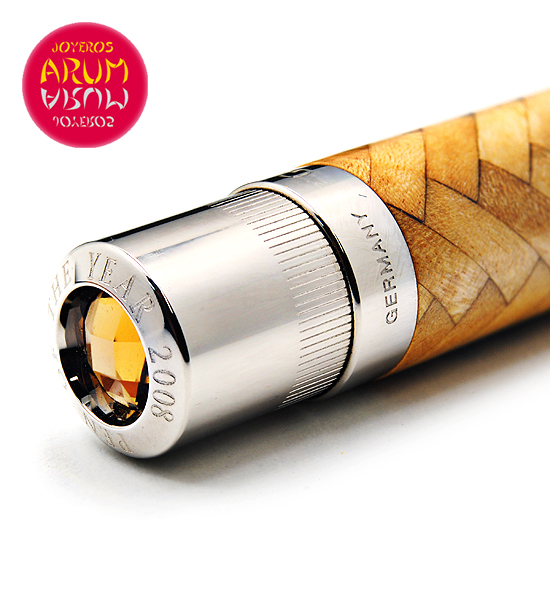 Description: Limited Edition 2008. The body is made of satinwood India specially selected. Up to 84 boxes of individually crafted satinwood were necessary to get the original design of this striking piece spikelet. No two equal segments and each must be placed in a specific position to generate smooth transitions. Then the body goes through a laborious process with successive stages of varnishing and polishing. The sample of the world’s smallest parquet resides on the surface of a fountain pen and a symbol of perfection. Worked with absolute precision, the 2008 Special Edition fountain pen combines stunning aesthetics with an unusual softness. The interaction between the vibrant warmth of satinwood and the warmth of the platinum-plated metal parts so fascinated by his attention to detail as its exclusive finish. A work of art culminating in his fragment faceted citrine set in the top of the cap. Your bicolor gold nib 18K is hand made. The solid clip spring allows secure attachment to the pockets of shirts and jackets, platinum plated cap protects perfectly the plunger mechanism.