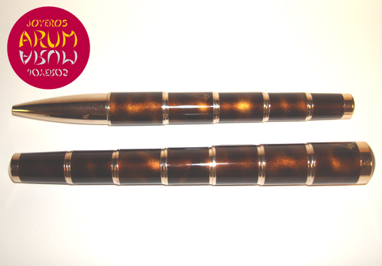 Materials:Brown mabled lacquer, gold plated rings, gold 18K nib.