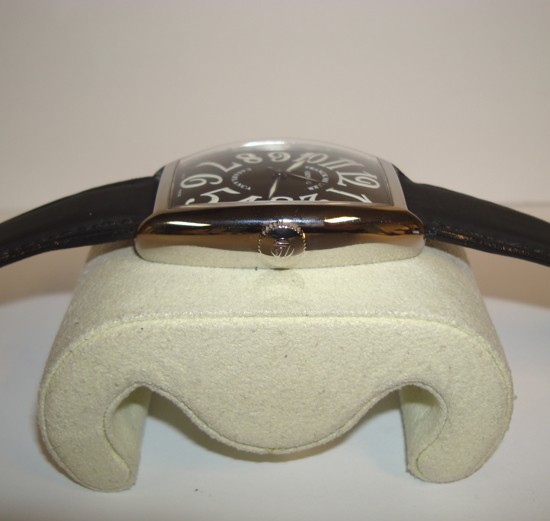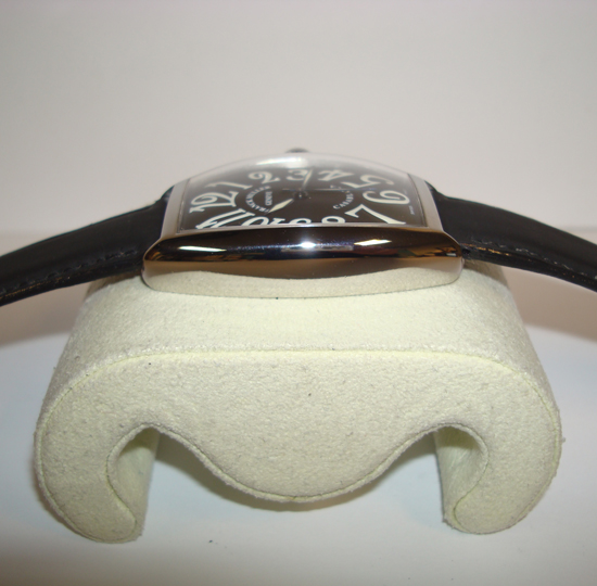 Description :steel, black dial with white arabic numerals, blue steel hands, sapphire crystal, automatic movement, luminescence dial and handles, central second, screw crown, diameter 31 mm by 43 mm, black leather strap, steel buckle closure .