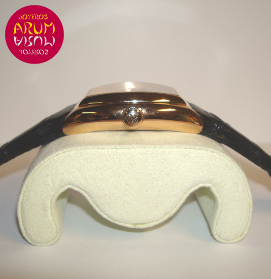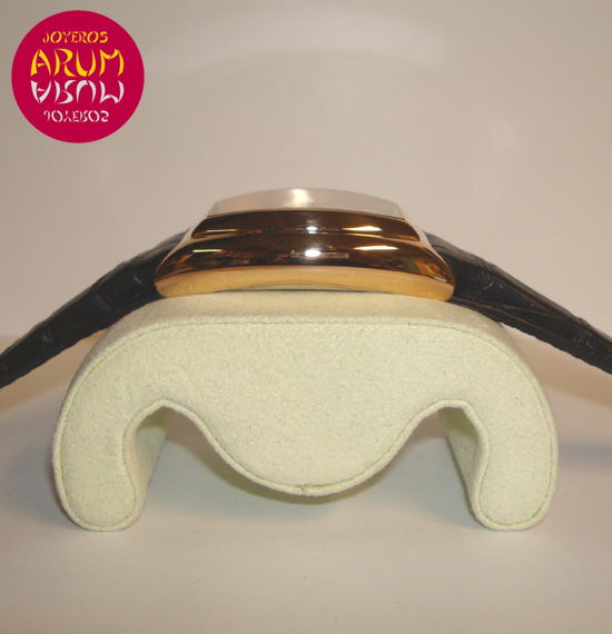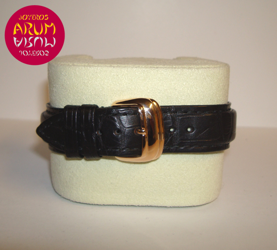 Description :pink gold, silver dial with arabic numbers, smooth bezel, sapphire crystal, automatic movement, center seconds, luminescent handles and numbers, blued steel hands, date at six, screwed crown, diameter 34 mm, black leather strap, buckle closure.