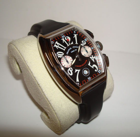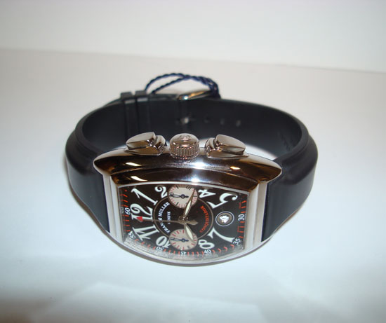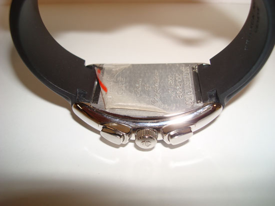 Description :steel, sapphire crystal, black dial with arabic numerals, automatic movement, chronograph, indicators of minutes and hours, date at six, luminescence in dial and handles, screw crown and two buttons, diameter 34 mm, rubber strap, buckle closure steel.