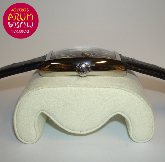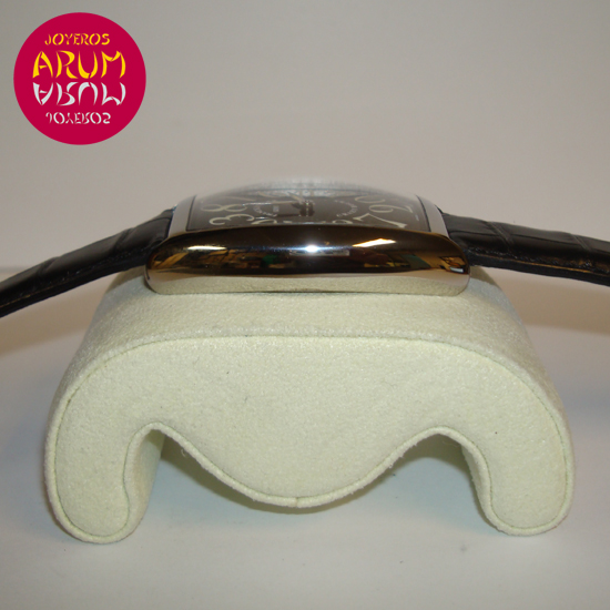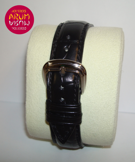 Description :steel, black dial with arabic numbers, sapphire crystal, automatic movement, handles and luminescent dial, screw crown, diameter 35 mm, black leather strap, steel buckle closure.