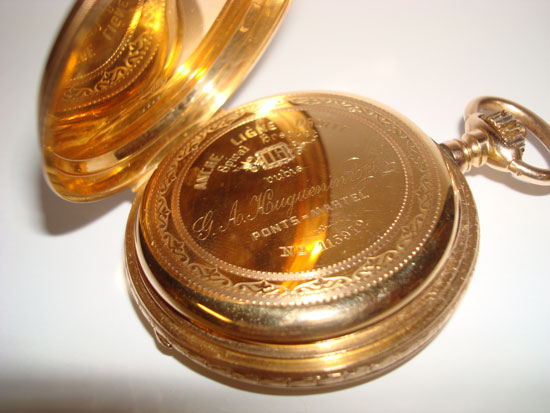Others: :small seconds, interior cristal. Engraved: Anche Ligne Droite. Spiral Breguet. Rubis. G.A Huguenin & Fils. Ponts Martel. Nº 115972