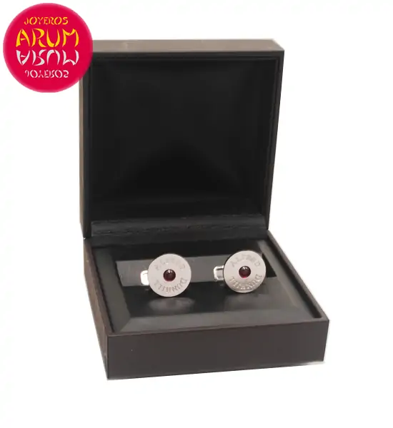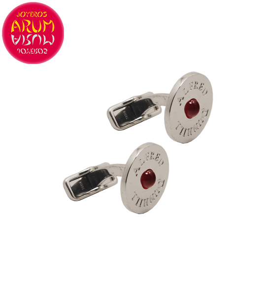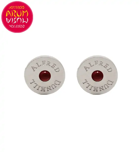 Product: Alfred Dunhill CufflinksShop Reference: RAJ1692Description: Alfred Dunhill cufflinks made in steel and red stone, diameter is 1,6 cm.Condition: Very good, with Alfred Dunhill box.