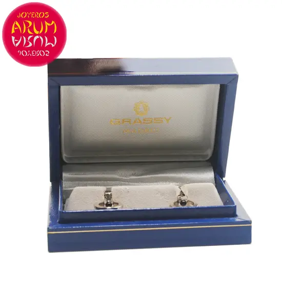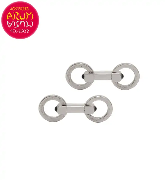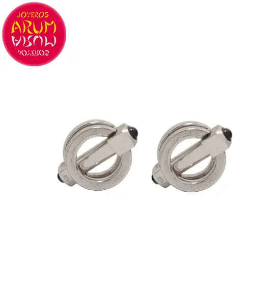 Product: Silver CufflinksShop Reference: RAJ1694Description: Cufflinks made in sterling silver and onyx, the ring diameter is 1,4 cm.Condition: Very good, with box.