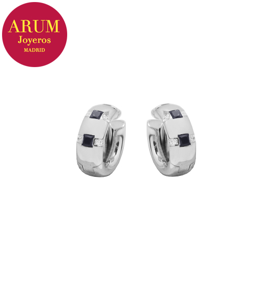 Product: Gold Earrings with SaphhiresShop Reference: RAJ2206Description: 18K white gold with thre sapphires 0.92 cts.Size: 1,8 cm by 1 cmCondition: Brand new, with box.