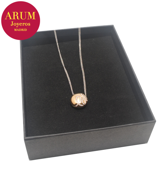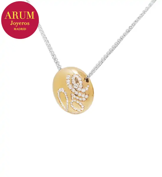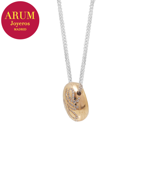 Description: 18K yellow pendant with diamonds 0,59 cts. and 18K white gold chain pendant.