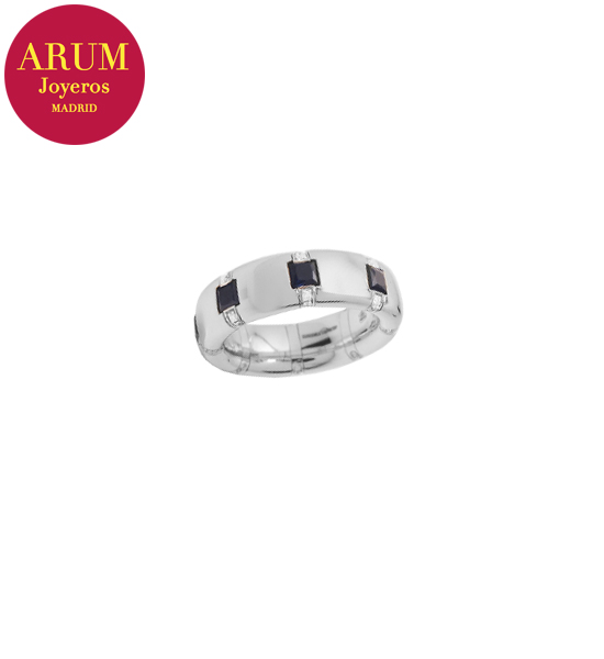 Description: 18K white gold flexible ring with diamonds 0,17 cts (G-VS) and eight sapphires (1.27 cts.)