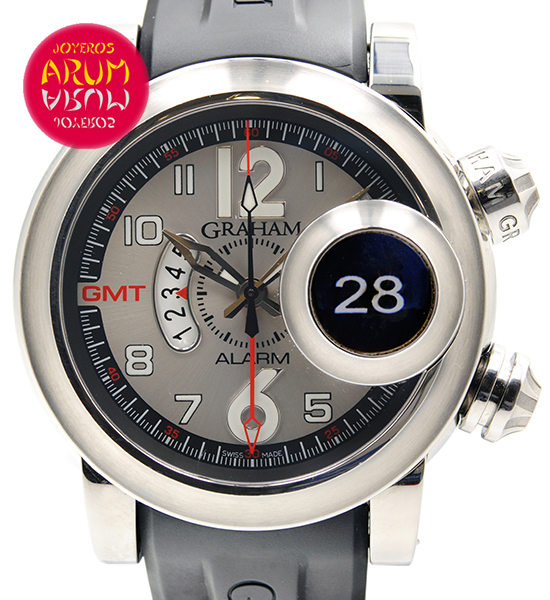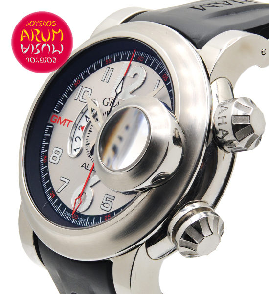 Other specifications :calibre G1711, power reserve 42 hours, smooth bezel, date at three, GMT function (second time zone), central seconds, luminiscence marks, two crown. Year 2010.