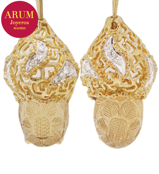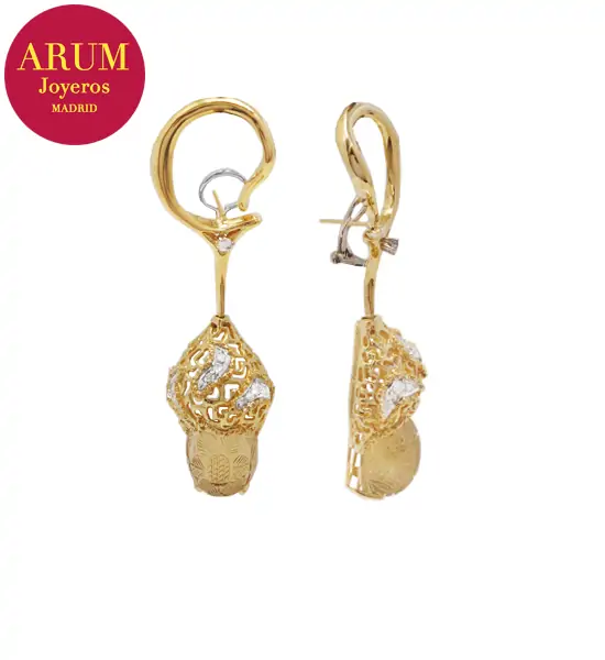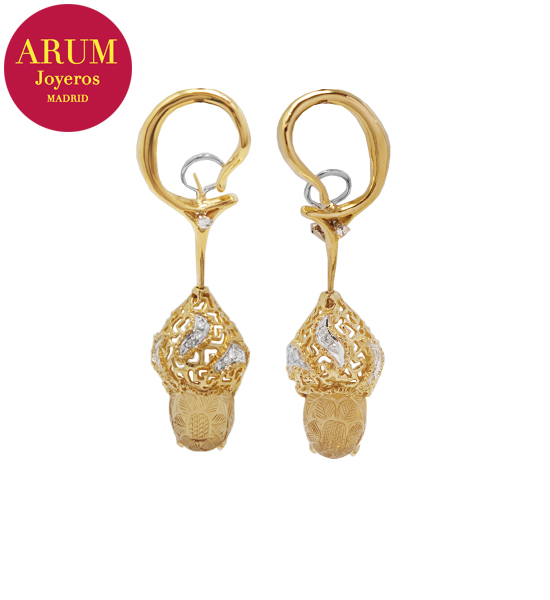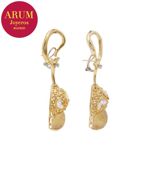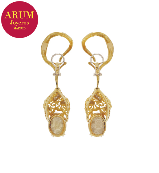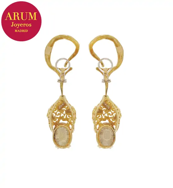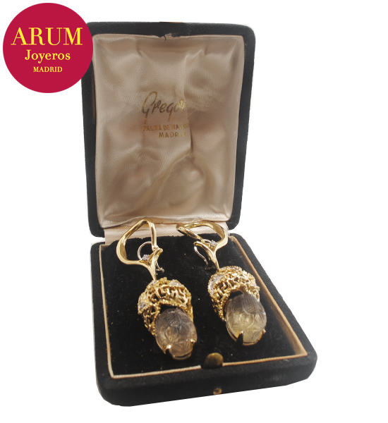 Product: Gregory EarringsShop Reference: RAJ2218Description: Gregory earrings made in 18K yellow gold and diamonds, with two quartzs. Large 19 cm.Condition: Very good, with Gregory box.