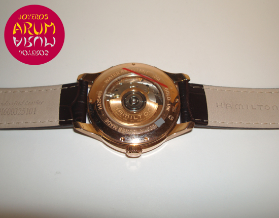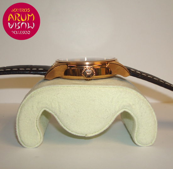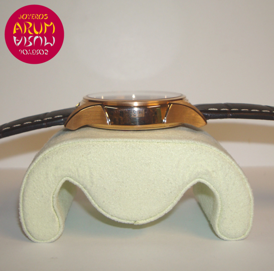 Description :limited edition of 500 pieces, pink gold, black dial, sapphire crystal, automatic movement, central second, handles and dial with luminescent indicators, date at three, power reserve indicator between seven and eight, screw crown, transparent caseback, diameter 40 mm, waterproof 30 meters, brown leather strap, rose gold buckle closure.