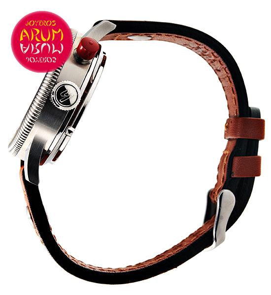 Other specifications :movement Valjoux 7750, bidireccional rotating bezel, chronograph with one button, small seconds at nine, chronograph minute counter at three, luminiscence numbers and handles.