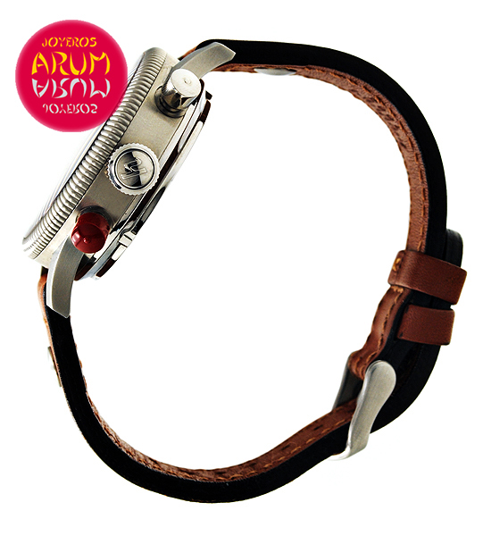 Other specifications :movement Valjoux 7753, bidireccional rotating bezel, chronograph, tachymetre and telemeter, small seconds at nine, chronograph minute counter at three, luminiscence numbers and handles, asymmetric chronograph buttons.