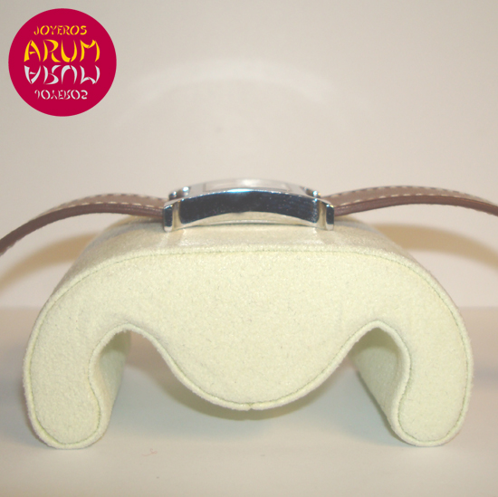 Description :ladies watch, steel, smooth bezel, beige dial, sapphire crystal, quartz movement, diameter 21 mm, brown leather strap, steel buckle closure.