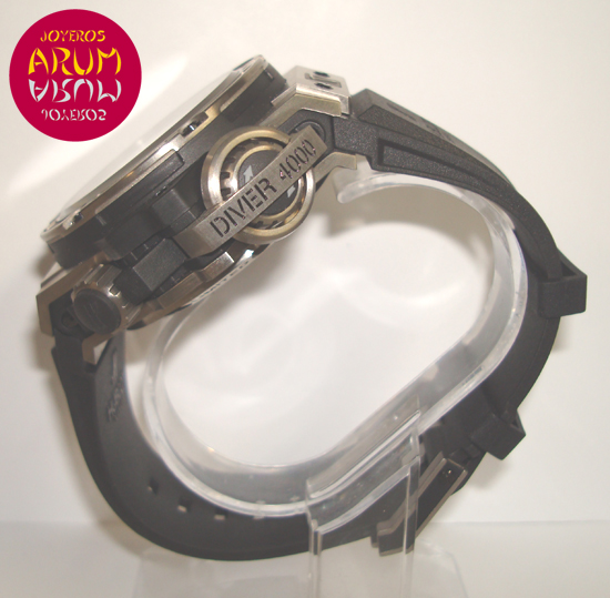 Description :limited to 1000 pieces, titanium, black dial, sapphire crystal, automatic movement, center seconds, luminescent indicators, date at three, crown at two lockable to ensure the tightness that controls the inner bezel, crown at four, backase with Oceanographic Monaco Museum logo, 48 mm diameter, water resistant 4000 meters, rubber strap, buckle closure.