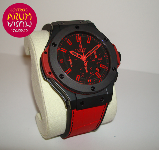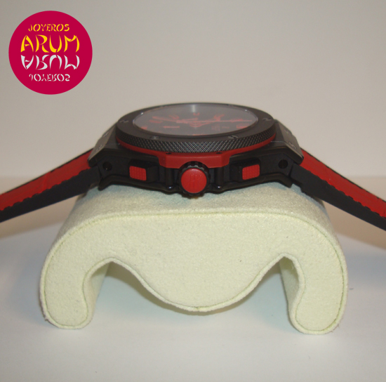 Description :limited edition 500 pieces, black ceramic, black dial, screw bezel, sapphire crystal, automatic movement, power reserve of 42 hours, chronograph, three indicators on the dial, seconds, minutes, hours, date between four and five, screw crown and two buttons, transparent back, diameter 48 mm, waterproof 100 meters, leather strap, folding clasp.